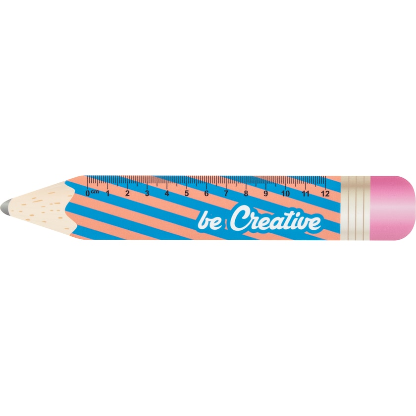 12 cm linjal formet som en penn. Last ned trykkmalen og designe linjalen helt selv. Hele oversiden trykkes etter dine egne ønsker. Linjalen er laget av plast som kan bøyes.