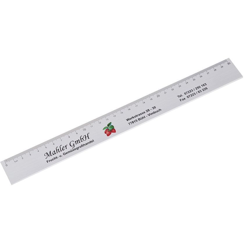30 cm aluminiumslinjal av høy kvalitet. Linjalen er ekstra stabil takket være profilstriper på baksiden. bestill aluminiumslinjaler med trykk hos Axon Profil!