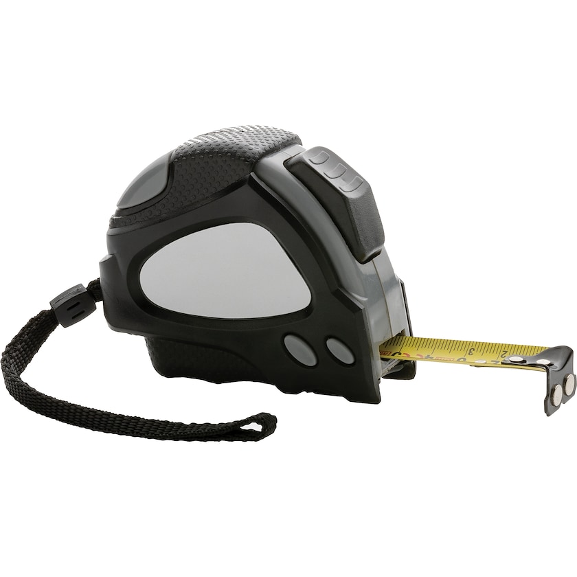 Robust målebånd av RCS-sertifisert, resirkulert ABS. Målebåndet har en bredde på 19 mm. Leveres enkeltpakket i forpakning av FSC-sertifisert papir. Trykket plasseres under en beskyttende overflate av transparent epoksy.