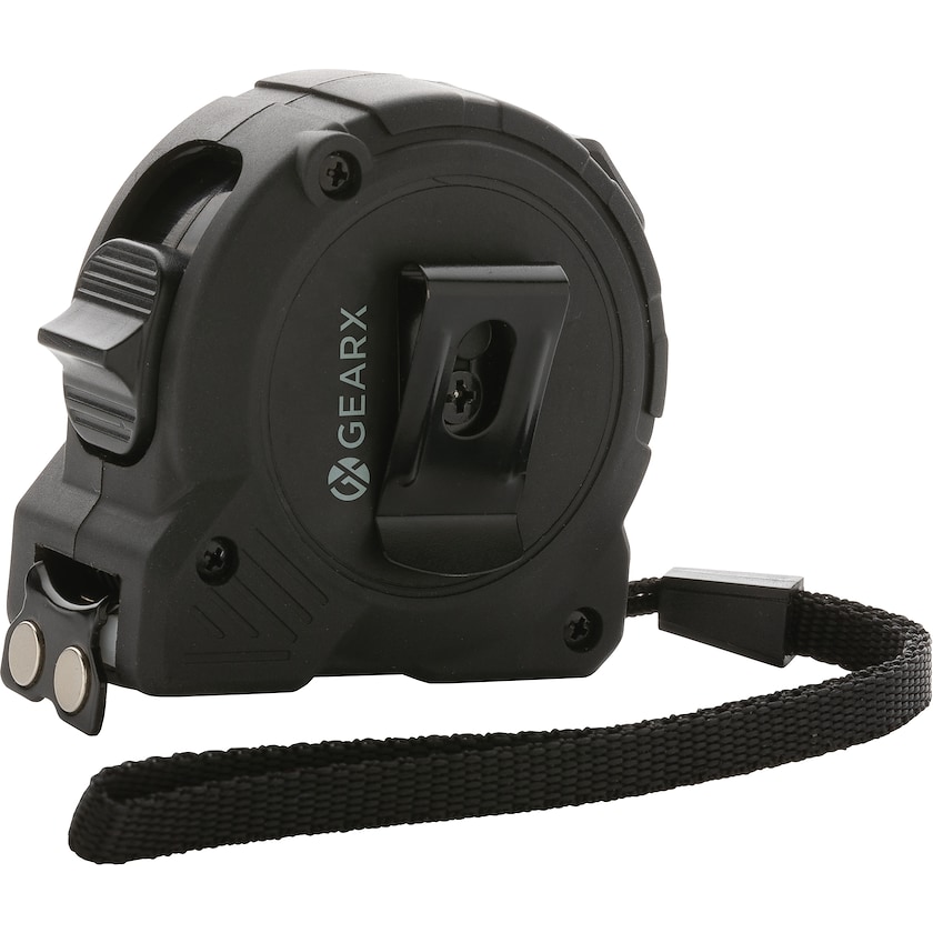 Målebånd 5 meter av høy kvalitet fra Gear X. Målebåndet har en forsterket konstruksjon som gjør at det tåler tøffe tak. Du kan rulle inn målebåndet i to forskjellige hastigheter. Leveres i en stilig gaveeske.