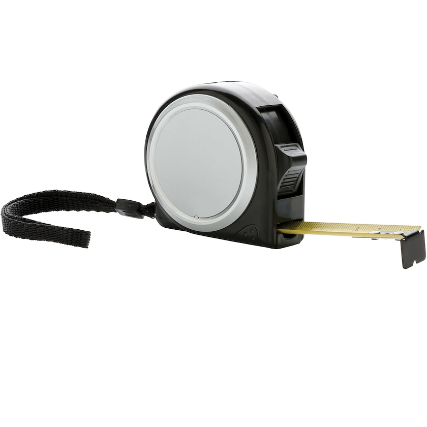 5-meters 19 mm målebånd som leveres i gaveeske. Målebåndet er utrustet med håndleddsreim og belteklips.