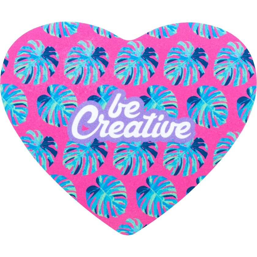 Hjerteformet musematte med bunn av gummi og overside av stoff. Hele stoffet påføres trykk. Stoffet er miljøvennlig og er laget av RPET. Musematten har sklisikker underside som gjør at den ligger stabilt på skrivebordet.