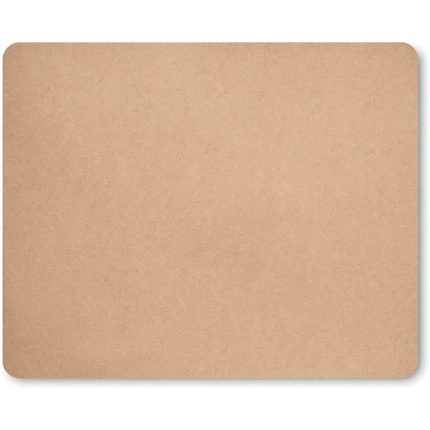 Musematte er resirkulert papir med underside av gummi. Takket være undersiden ligger musematten stødig på skrivebordet.