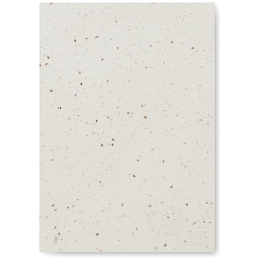 Innbundet skrivebok med mykt omslag av frøpapir. Innmaten består av 100 linjerte sider av resirkulert papir. Frøpapiret kan plantes og bli til forskjellige blomster.
