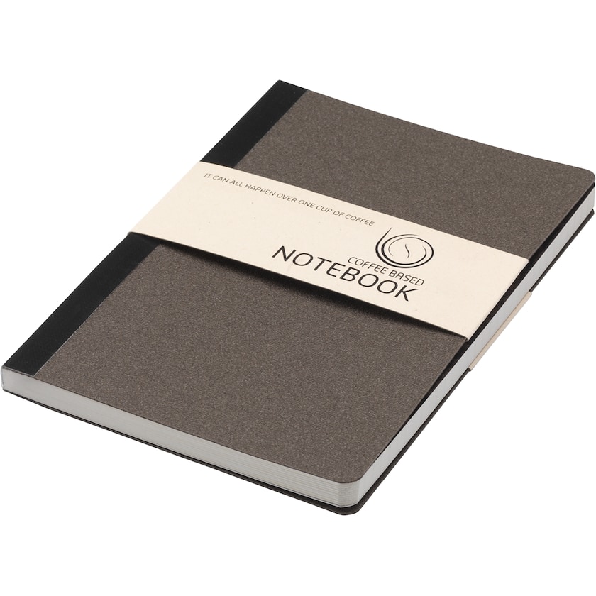 Skrivebok med omslag som er laget av kaffegrut. Kaffegrut er et organisk materiale som nedbrytes biologisk. Skriveboken er så naturlig at den til og med lukter kaffe! Innmaten består av 80 linjerte sider av resirkulert papir. Trykket kan gjøres i maksimalt to farger.