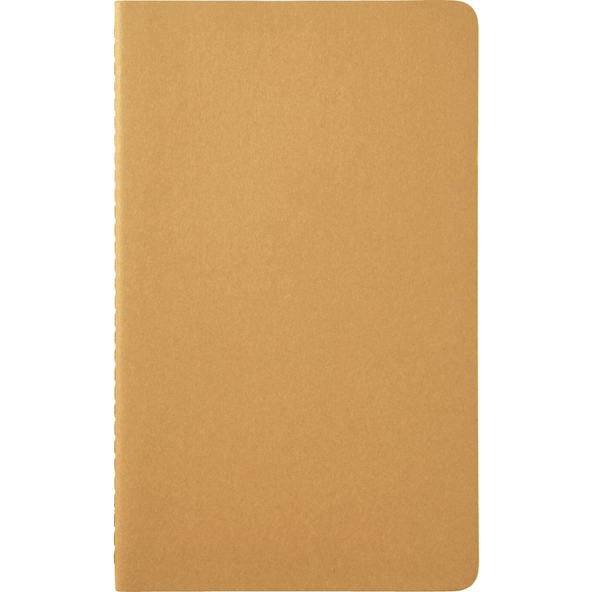Ulinjert skrivehefte fra klassiske Moleskine. Skriveheftet har kartongomslag med synlig søm i ryggen. Sidene er elfenbenfargede og linjerte. De siste 16 sidene kan tas ut. Det er bare mulig med 1-fargetrykk.