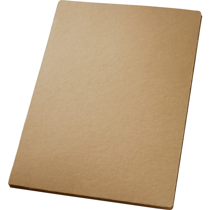 Papirmappe med penn og skriveblokk. Skriveblokken inneholder 20 ark av gjenvunnet papir. Bestill pappmapper med trykk hos Axon Profil!