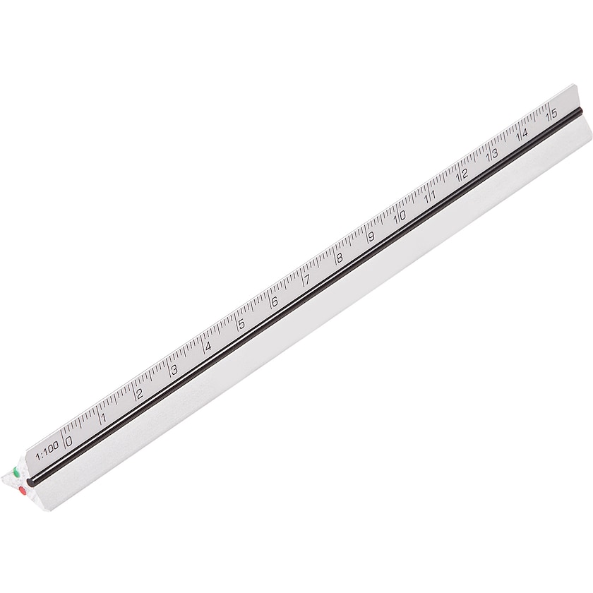 Høykvalitets skalalinjal som fås med fem ulike skalaer etter ønske. En profesjonell skalalinjal til for eksempel arkitekter og ingeniører. Linjalen har tre langsgående gummistrenger i rødt, grønt og svart som gjør det raskt å finne riktig skala. I detaljbildet finnes de tilgjengelige skalaene. Skala nr 2 og 3 er mest populære blant arkitekter og 4 blant ingeniører. Ved bestilling angir du bare hvilken av skalaene nr 1-9 du vil ha og hvilken av de seks skalaene du vil ta bort.