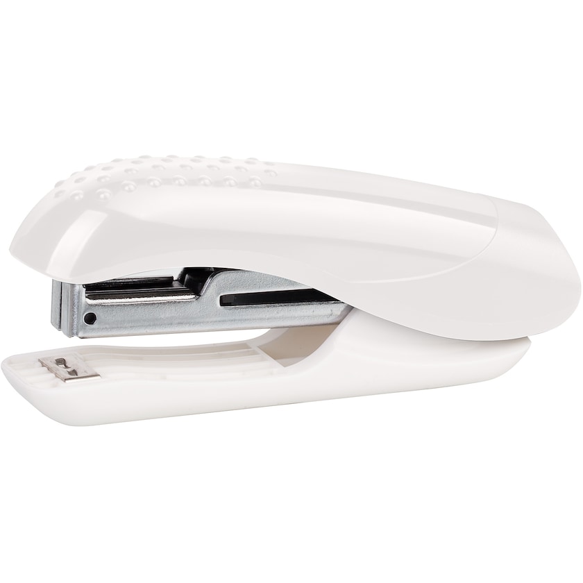 Stiftemaskin med trykk. Klarer å stifte sammen ca. 10 ark. Trykket gjøres på oversiden av stiftemaskinen.