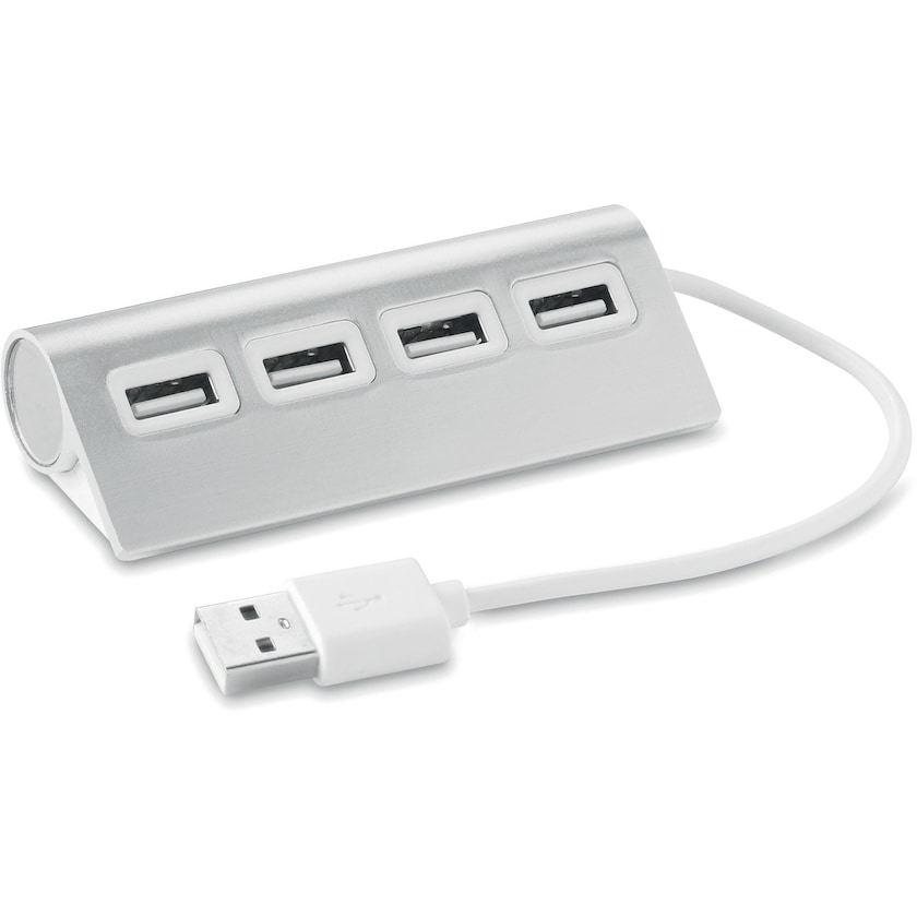 Elegant USB-hub av aluminium. Bailey har 4 stk USB 2.0-porter. Kabellengden er 14,5 cm. Merking skjer enten med trykk eller lasergravering.