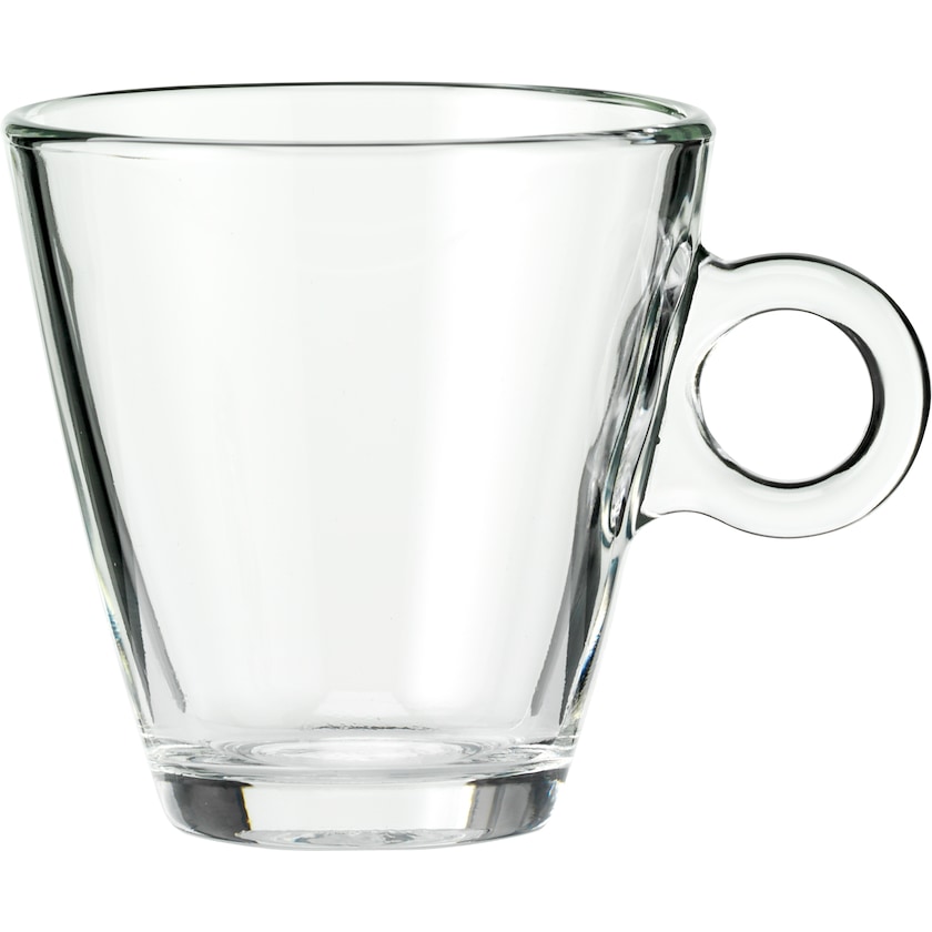 Stort glasskrus av herdet glass i høy kvalitet. Kruset passer perfekt til te eller kaffe. Produsert i Italia. Merking gjøres med lasergravering.