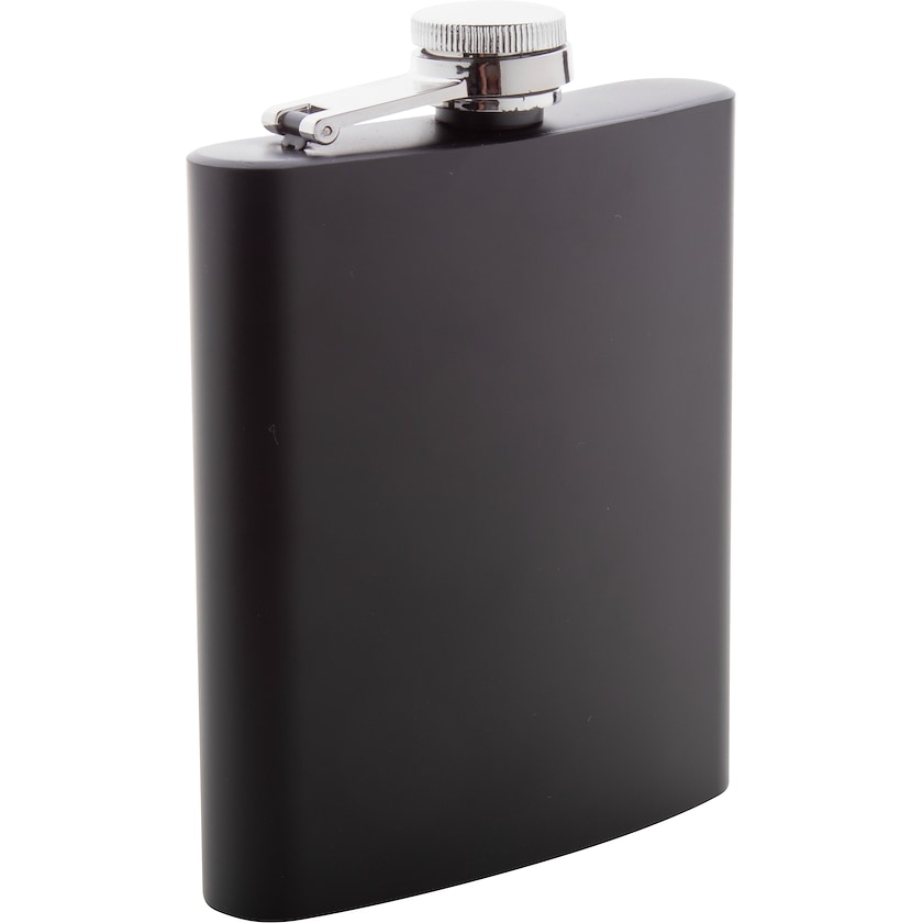 Svart lommelerke av rustfritt stål. Frederick rommer 20 cl, noe som er tilstrekkelig for de fleste. Merking gjøres med lasergravering.