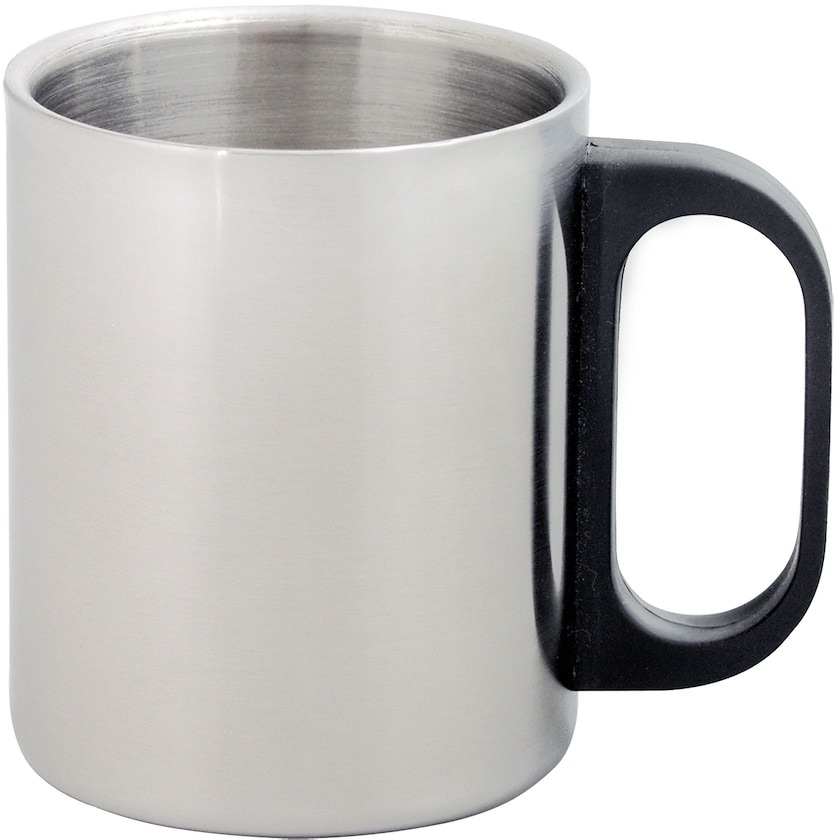 Ordentlig metallkrus med bekvemt håndtak i plast. Merking skjer enten med trykk i maks to farger eller gravering.