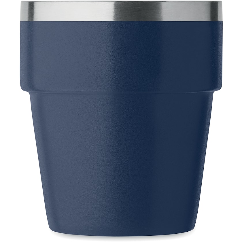Vakkert metallkrus som kan stables. Cortina er laget av 90% resirkulert, rustfritt stål og 10% vanlig, rustfritt stål. Takket være de doble veggene, holder kruset drikken varm lenge.