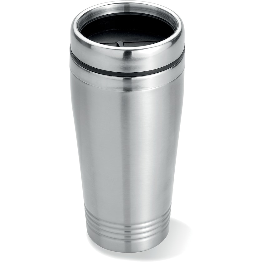 Elegant reisekopp i metall med doble vegger. Kruset er laget av rustfritt stål og har et lokk av polypropen. Merking skjer enten med trykk eller lasergravering.