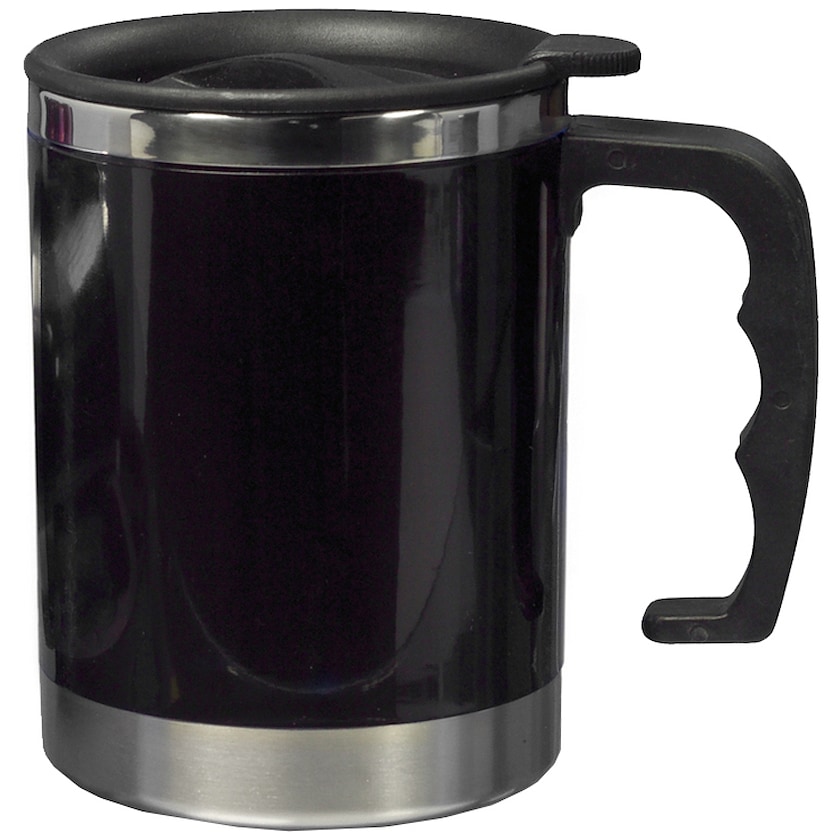 Stabil krus i metall og plast. Lokk følger med.