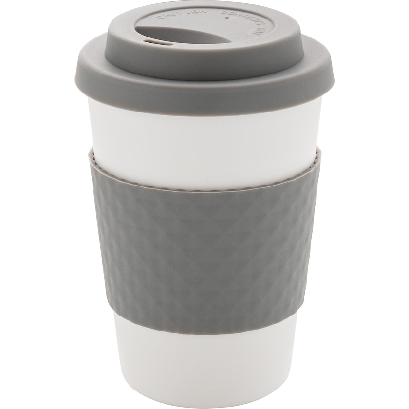 Take-away-krus med lokk og grep av silikon. Rommer 0,27 l. Koppen kan kjøres i oppvaskmaskin og microbølgeovn. Passer de fleste kaffeautomater.