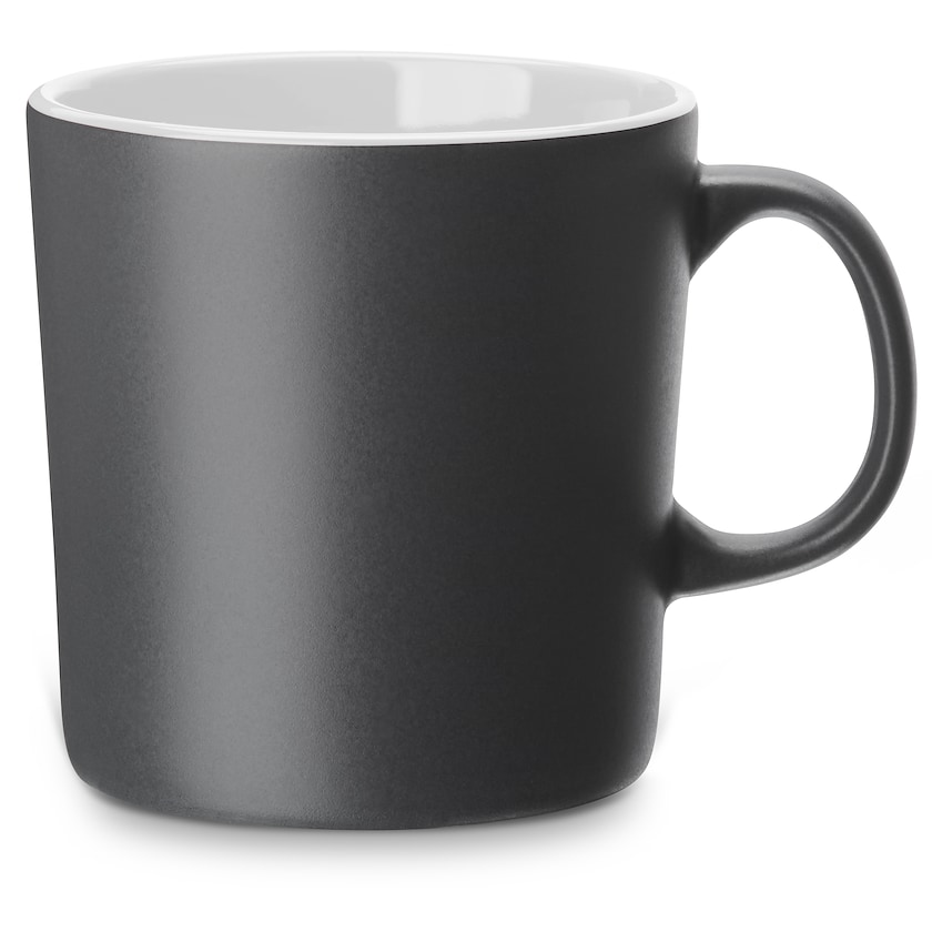 Grå steingodskopp med farget innside. Utsiden er pent matt og innsiden blank. Koppen er laget av steingods i høy kvalitet og rommer 25cl.