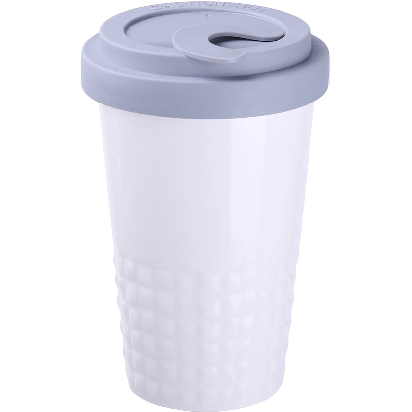 Takeaway-krus med stilig design laget av porselen med sølesikkert lokk. Porselenskruset har en bunn med unikt design som er behagelig å holde. Takket være doble vegger holdes drikken varm lengre enn vanlig. Lokket er av gummi.