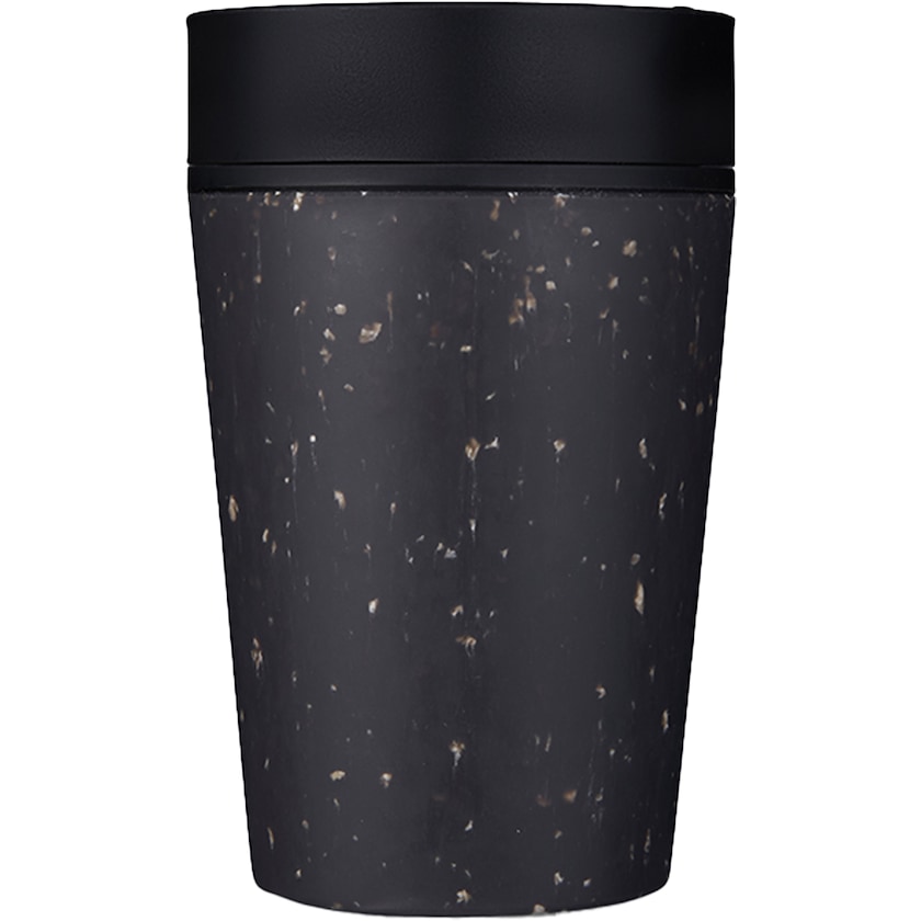 Lite takeaway-krus av resirkulert materiale. Kruset har doble vegger. Ytterlaget er produsert av brukte, resirkulerte, engangskopper til kaffe av papir. Det indre laget og lokket er produsert av polypropen. 100% lekkasjefritt. Lokket har en patentert utforming som gjør at du kan drikke fra alle retninger. Lokket kan åpnes og lukkes med én hånd. Produsert i Europa. Ved trykk i maksimalt to farger er trykkoverflaten 80 x 25 mm.