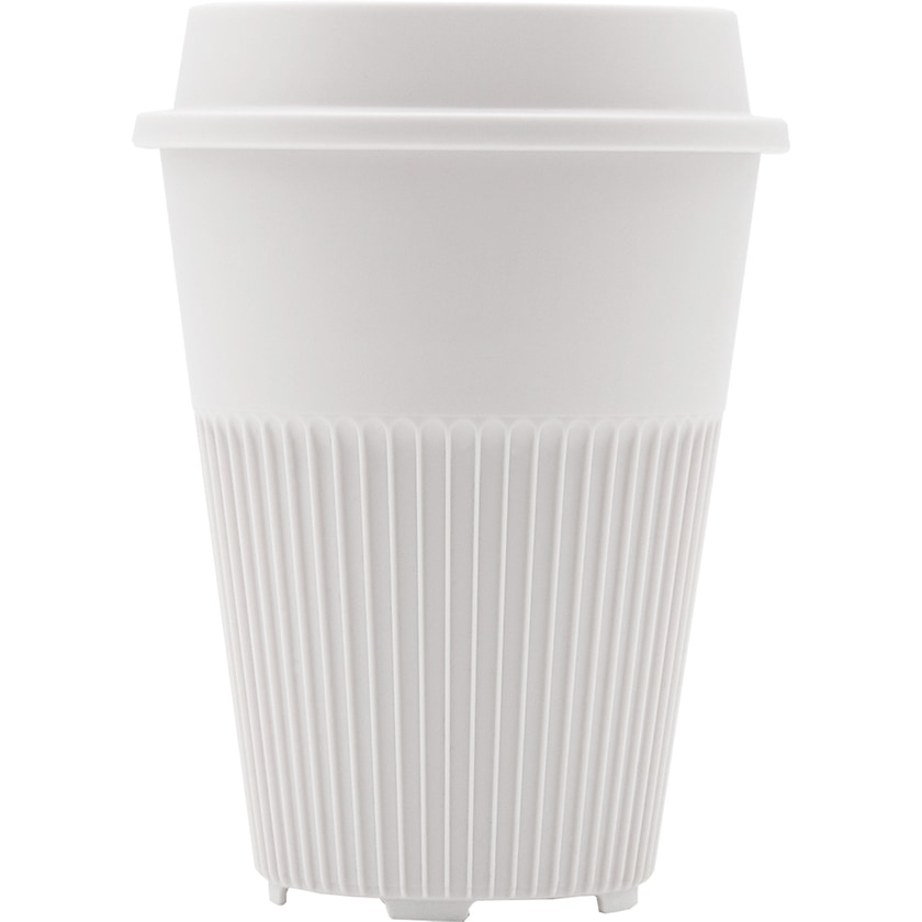 Takeaway-krus fra Circular & Co. Kruset er slitesterkt, gjenbrukbart, det kan stables og resirkuleres. Ribbene hindrer at kruset blir unødvendig varmt og gir et godt grep. Bunnen er hurtigtørkende. Lokket har en smart drikkeåpning. Passer i koppholderen i bilen og under kaffemaskinen på jobben. Matsikker og uten BPA. Skal kjøres i den øvre kurven i oppvaskmaskinen.