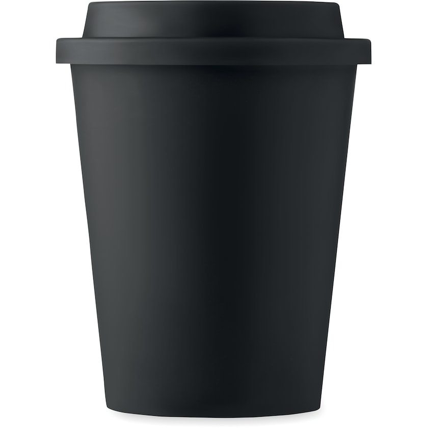 Takeaway-krus med doble vegger. Kruset er helt lekkasjefritt. Perfekt til deg som ofte er på farten! Ved 1-fargetrykk er trykkoverflaten hele 220 x 60 mm.