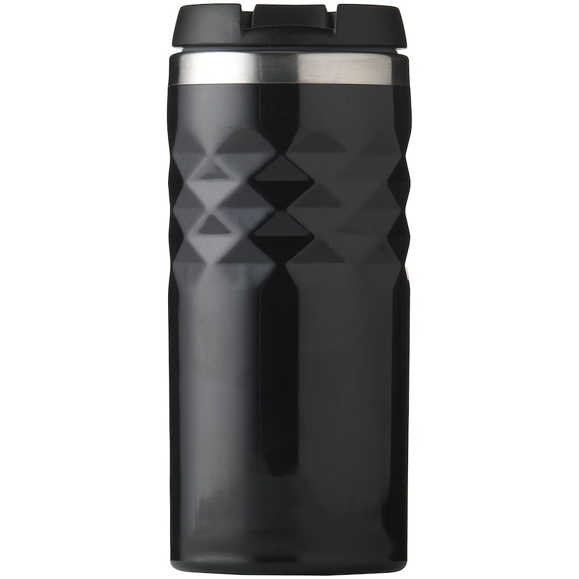 Termokrus med stilig geometrisk mønster. Kruset har doble vegger og er lekkasjesikkert. Ved 1-fargetrykk er trykkoverflaten hele 80 x 60 mm. Bunnen er sklisikker. Leveres enkeltpakket i pappeske.