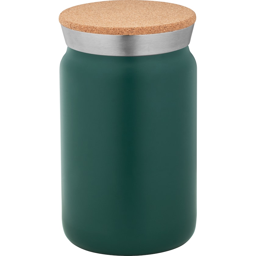 Termokrus av rustfritt stål med lokk av kork. Takket være vakuumisolering med kobber, holdes drikken varm i 5 timer og kald i 24 timer. Merking gjøres enten med 1-fargetrykk eller lasergravering.