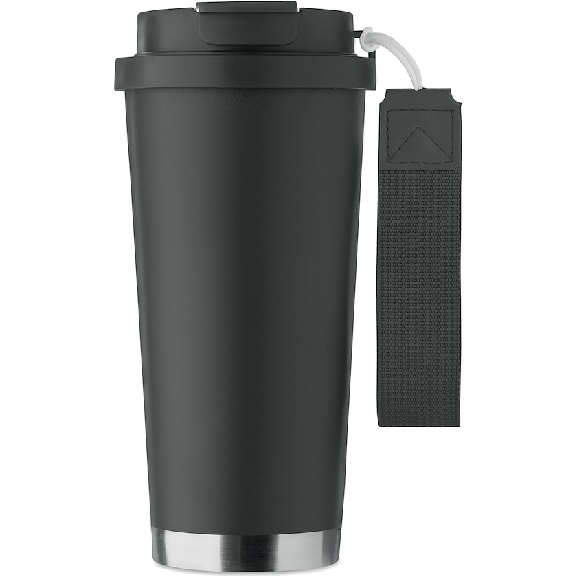 Stort termokrus av resirkulert, rustfritt stål. Kruset har doble vegger, noe som gjør at drikken holdes varm lenger. Lokket er laget av polypropen og har en 2-i-1 drikketut. Lekkasjefri.
