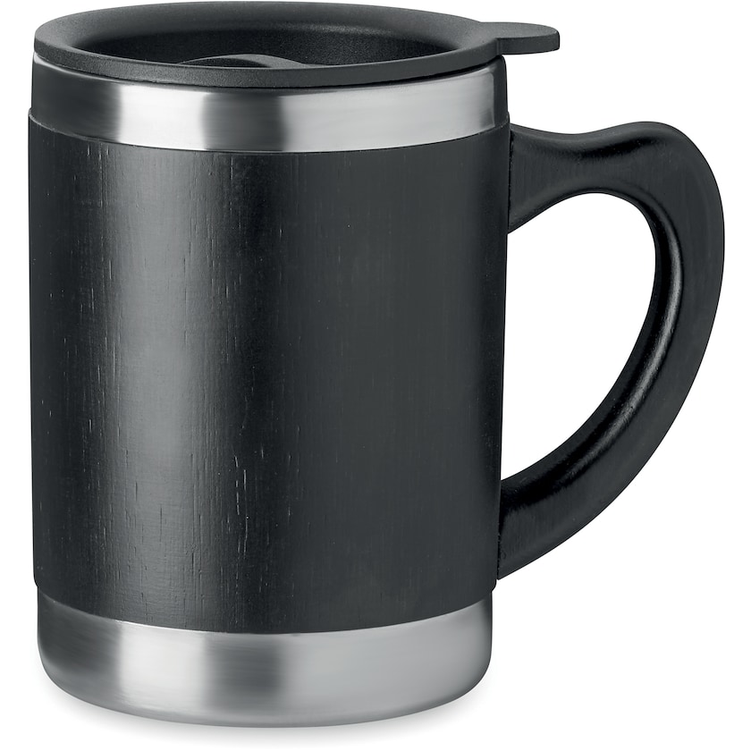 Termokrus av rustfritt stål og bambus. Kruset har doble vegger, slik at drikken holdes varm lenge. Lokket har et flyttbart hull til å drikke av. Et stilig termokrus av høy kvalitet.