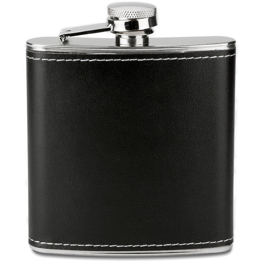 Elegant lommelerke i metall og imitert skinn som rommer 18 cl. Merking gjøres med lasergravering på flaten med imitert skinn.
