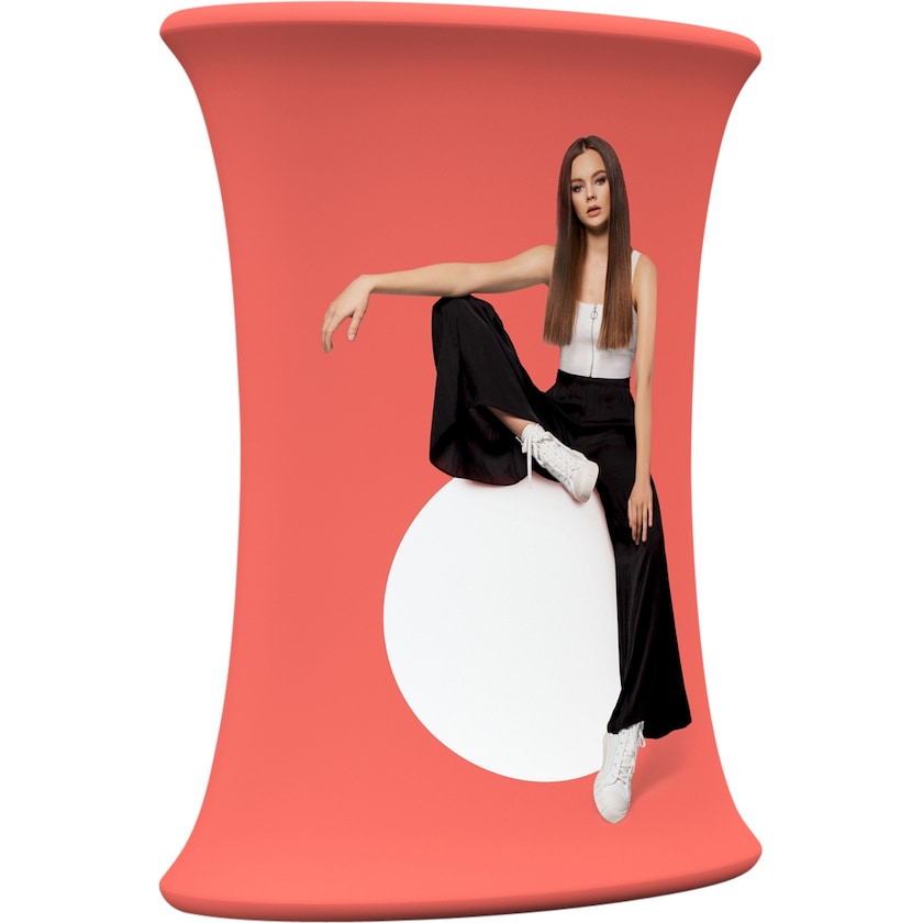 Smart messebord som foldes ut på bare 3 sekunder. Før førstegangsbruk, monteres duken ved å trekke det over konstruksjonen og feste det i silikonkanten. Når det er gjort, kan messebordet slås opp gjennom et lett løft av bordflaten. Takket være det hydrauliske systemet, kreves knapt noe kraft og det tar bare 3 sekunder. Når messebordet ikke er i bruk, kan det oppbevares i den inkluderte posen. Ved behov kan stoffet bestilles separat, slik at motivet på messebordet kan fornyes.