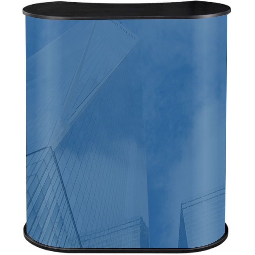 Populært messebord med buet form. Expo Curved har en smart konstruksjon med bordplate av tre og understell av PVC, begge med borrelåskant til montering. Trykket gjøres på en laminert film som plasseres på understellet. Den laminerte filmen kan enten være matt eller blank. Messebordet transporteres praktisk i den inkluderte vesken.