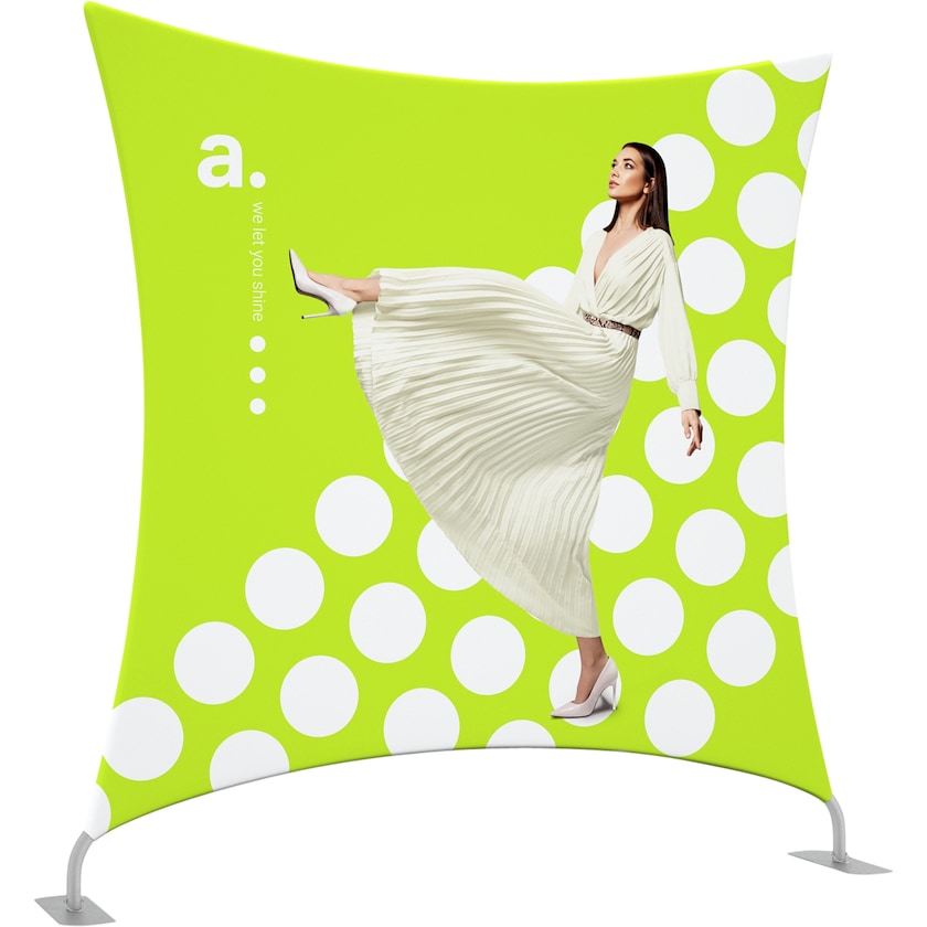 Innovativ messevegg med spennende form. Softstar Bat 260 har en genial konstruksjon av aluminiumsrør som klikker i hverandre og som monteres sammen til en bue. Du trenger ikke verktøy til monteringen. Etter at buen er montert, trekker du bare duken over rammen og lukker med en glidelås. Duken trykkes med vannbasert farge på for- og baksiden. Duken tåler maskinvask på 30 grader. Ønsker du i fremtiden å bytte motiv, bestiller du bare en ny duk.