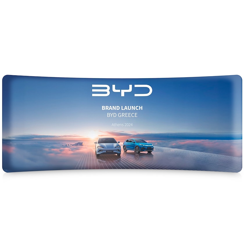 Lett buet softvegg som er hele 600 cm bred. Softwall XXL, består av en rørramme med aluminiumseksjoner som enkelt kan settes sammen til en messevegg. Det inkluderte stoffet trekkes over rørrammen og resultatet blir en mykt formet messevegg med førsteklasses trykkvalitet. Du trenger ikke verktøy til monteringen. Fordelen med dette systemet, er at det er lett å bytte ut motivet ved å bytte stoffet. Trykkprisen gjenspeiler trykk på forsiden. 5 års garanti på rørrammen.
