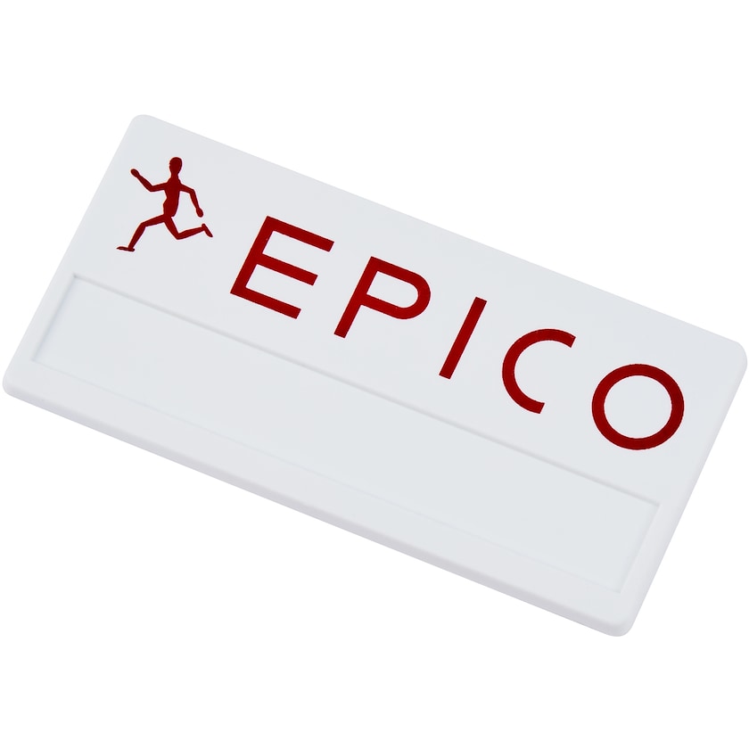 Lite navneskilt til en lav pris. Navneskiltet festes med hjelp av en sikkerhetsnål. Et godt valg for deg som ønsker et lite navneskilt til en lav pris.