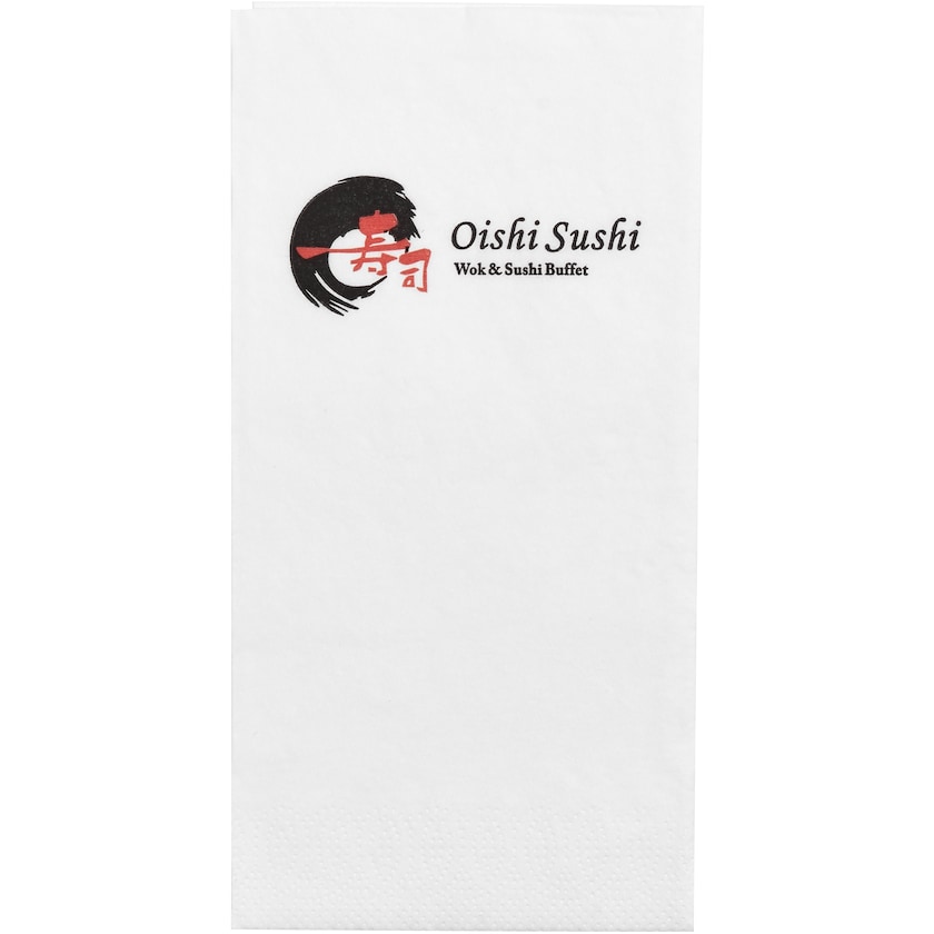 Hvit 2-lags middagsserviett fra Tork. Servietten leveres 1/8-brettet og har da målene 19,5 x 9,75 cm. Når servietten er fullt utbrettet har den målene 39 x 39 cm. Hele oversiden trykkes helt etter dine ønsker. Servietten gir måltider i enklere miljøer en mer eksklusiv følelse. Servietten er miljømerket med Eu Ecolabel, som innebærer at den er laget av gjenvunnet fiber fra 100% holdbart forvaltede skoger. Den er også Food contact approved etter 4764801. Prisene er oppgitt i enheter på 1000 stk.