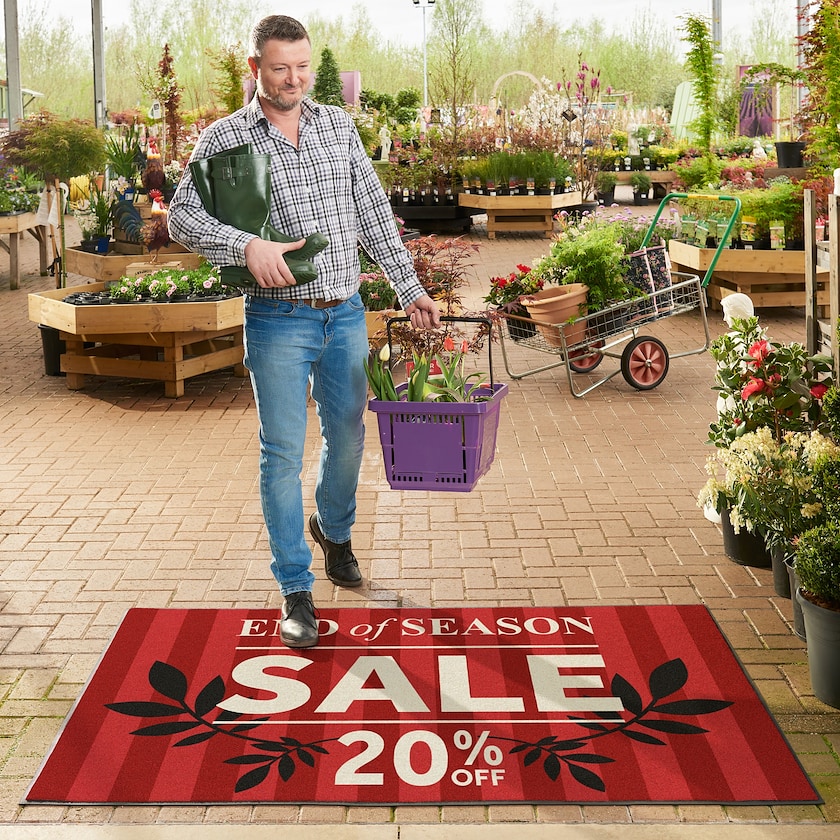 Matte med trykk i høy kvalitet. Matten har en base av sort nitrilgummi og er ekstremt slitesterk. Når matten blir møkkete kan den enten spyles med høytrykkspyler eller vaskes i maskin på høyst 60 grader. Matten er ment for bruk innendørs. 2 års garanti. Trykket skjer i noen av de 45 fargene som vises i detaljbildet. Prisen inkluderer trykk i høyst 20 av disse farger.