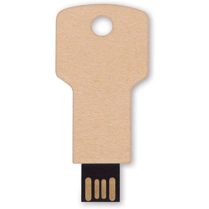 USB-minnepinne formet som et hus av naturfarget kartong. Perfekt til f.eks. boligbyggerlag eller arkitektbyråer. Trykket gjøres med digitaltrykk. Leveres i en naturfarget pappeske.