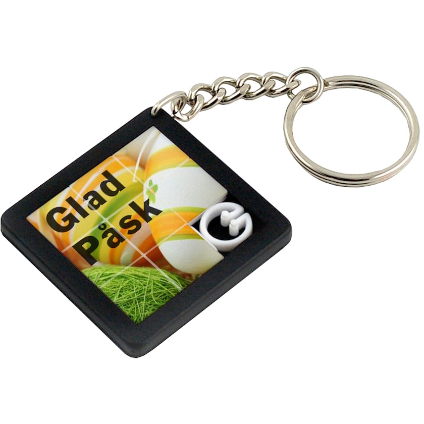 En fin klassiker i nytt design som en nøkkelring. Svart ramme og hvit pusleflate.