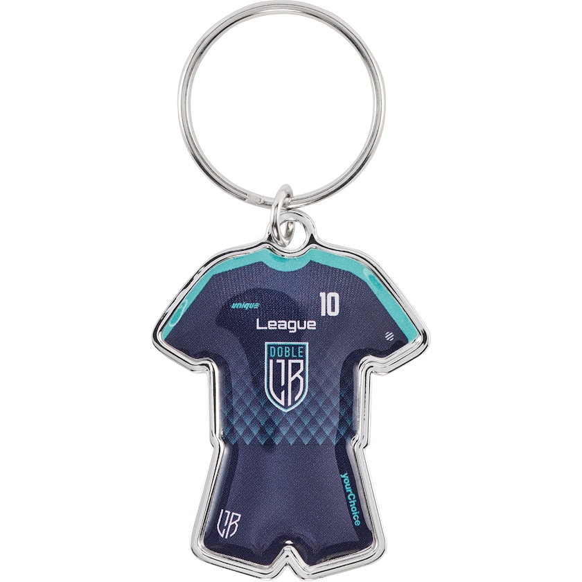 Nøkkelring designet som en fotballdrakt. Nøkkelringen er produsert i metall og kan kjøpes i fargene gull, sølv og bronse. Motivet digitaltrykkes og dekkes av et beskyttende epoksylag. Leveres enkeltpakket i silkepapir.