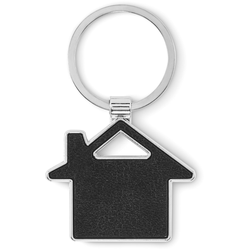 Husformet nøkkelring av metall og resirkulert kunstskinn. En eksklusiv nøkkelring som passer perfekt til f.eks. eiendomsmeglere.