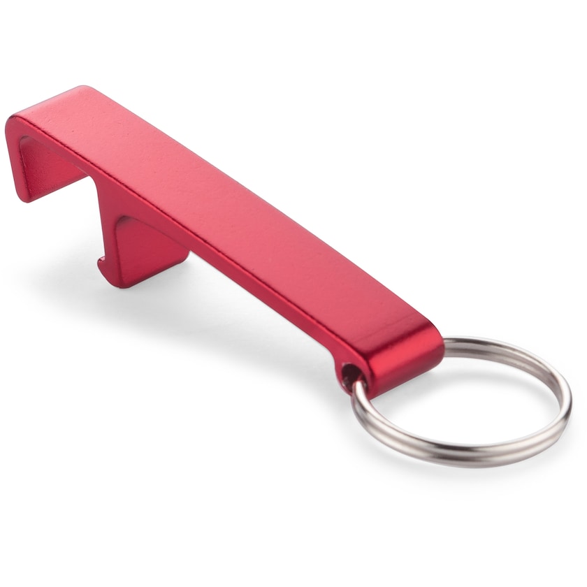 Liten flaskeåpner som også fungerer som mobilstativ. Nøkkelringen gjør at den er lett å feste på nøkkelknippet. Merking gjøres med lasergravering.