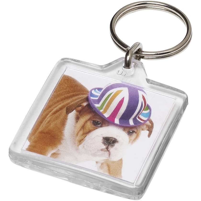 Miljøvennlig nøkkelring med kvadratisk form. Torin er laget av det miljøvennlige materialet GPPS. Trykket gjøres på begge sidene av et papir som plasseres inne i GPPS-merket på nøkkelringen. Trykket kan være forskjellige på begge sidene. Nøkkelringen er produsert i Europa. En klassisk nøkkelring nå i miljøvennlig format!