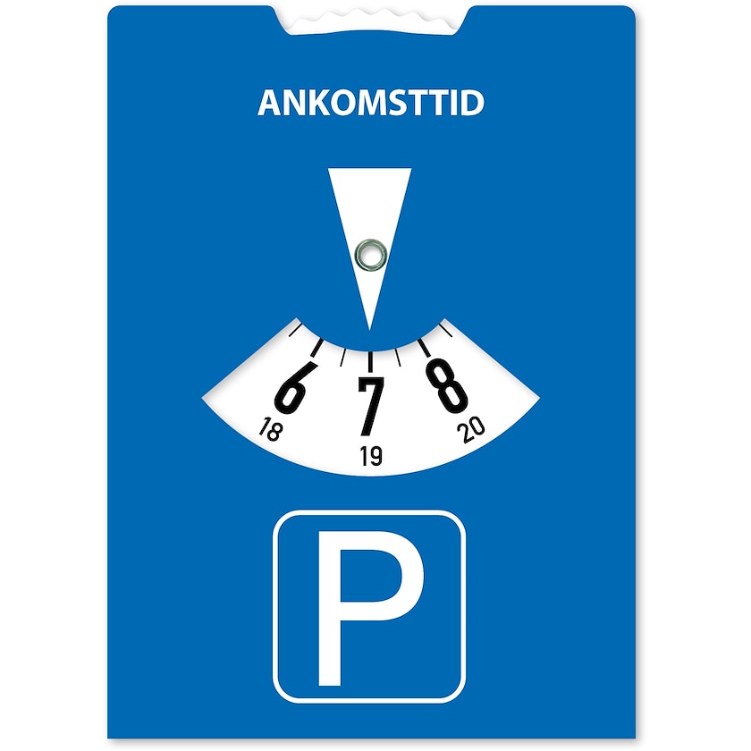 P-skive som viser ladetid til elbiler. Forsiden er akkurat som en vanlig p-skive og på baksiden vises beregnet ladetid. Begge sidene trykkes helt etter dine egne ønsker, så du selv designe p-skiven akkurat som du vil ha dem.
