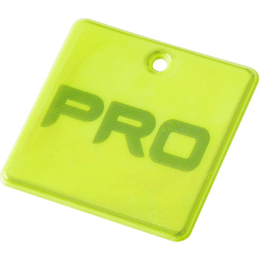 Kvadratisk mykrefleks laget av 3M Scotchlite-materiale. Refleksen leveres enten med lenke i metall eller snøre og sikkerhetsnål. Refleksmaterialet kommer fra 3M Scotchlite og oppfyller kravene til EN13356:2001. For at refleksen ikke skal miste kraften skjer trykket under refleksoverflaten.