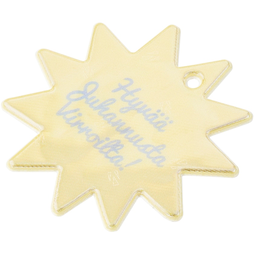 Herlig mykrefleks som er formet som en sol. Medusa leveres enten med snor og sikkerhetsnål eller med kulelenke. Refleksmaterialet er godkjent i henhold til EN13356:2001. For at refleksfunksjonen ikke skal påvirkes negativt plassers trykket under refleksoverflaten.