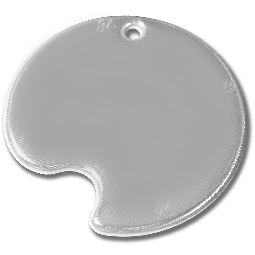 Kul mykrefleks utformet som en malepalett. Refleksen leveres enten med sikkerhetsnål og snøre eller kulelenke av metall. Refleksmaterialet kommer fra 3M Schotchlite og oppfyller kravene til EN13356:2001. For at refleksmaterialet ikke skal påvirkes negativt skjer trykket under overflaten.
