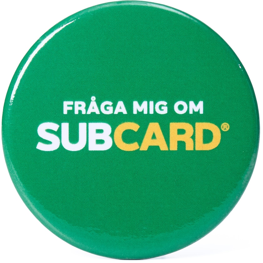 Rund button med sikkerhetsnål. Et klassisk reklameprodukt til lav innkjøpspris.