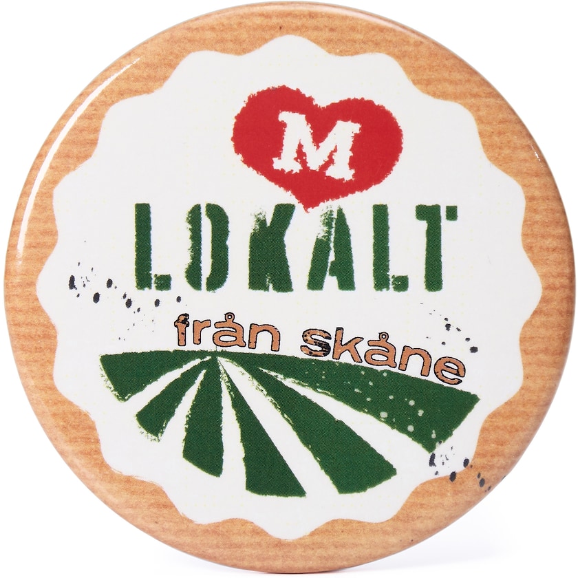 Stor reklamebutton med sikkerhetsnål på baksiden. Et rimelig profilprodukt som er perfekt for større reklamekampanjer.